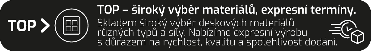 - Desky jsou dostupné v maximální rozměru 2000 x 3050 mm – pokud se jedná o větší rozměr, tak jsou desky skládané z více kusů (dle zadaného rozměru desky – běžná praxe)